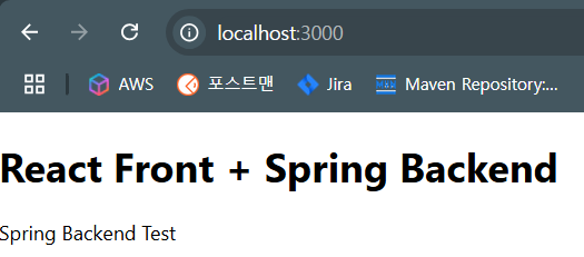 SpringBackendTestController.java 의 아래 "Spring Backend Test" 입력문구 도 같이 연동되어 출력된다.(아래 2번째줄)