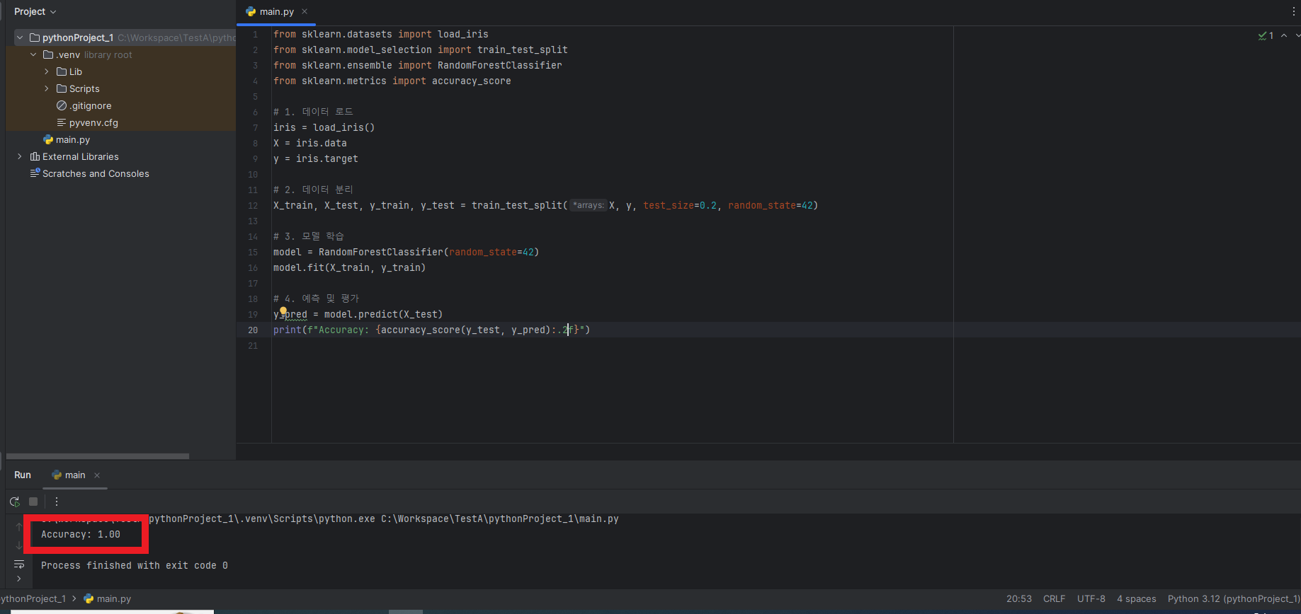 정확도가 1이라는 결과의 다른 근거는